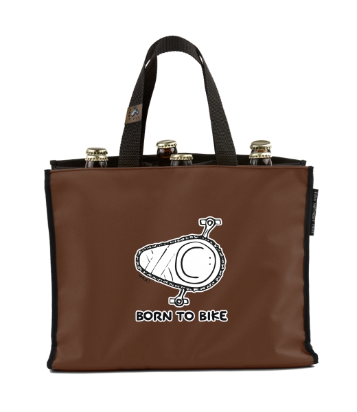 BEER CARRIER - bag for beer with design 1074 BORN TO BIKE in color BROWN SUGAR