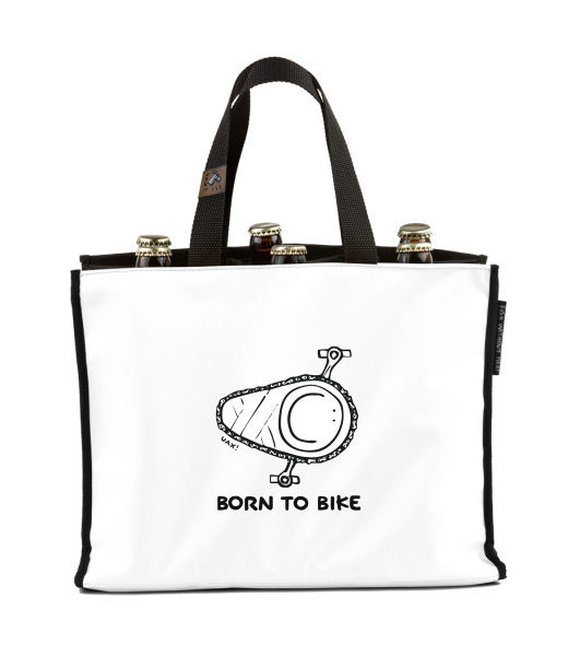 BEER CARRIER - bag for beer with design 1074 BORN TO BIKE in color WHITE