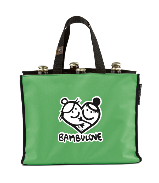 BEER CARRIER - bag for beer with design 1079 BAMBULOVE in color BRIGHT GREEN