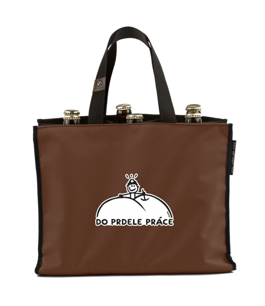 BEER CARRIER - bag for beer with design 1082 DO PRDELE PRÁCE in color BROWN SUGAR