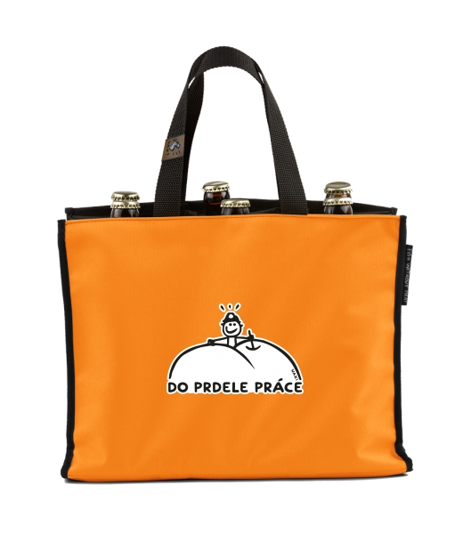 BEER CARRIER - bag for beer with design 1082 DO PRDELE PRÁCE in color SIGNAL ORANGE