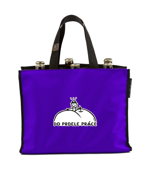BEER CARRIER - bag for beer with design 1082 DO PRDELE PRÁCE in color VIOLET