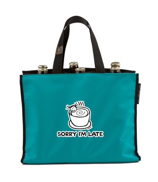 BEER CARRIER - bag for beer with design 1087 SORRY IM LATE in color TURQUOISE