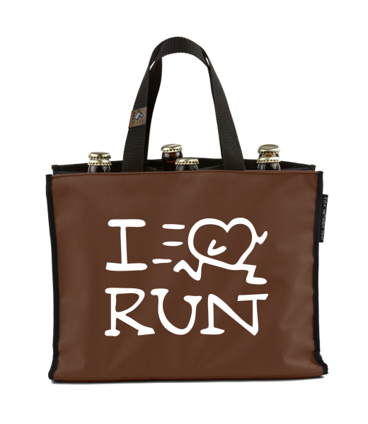 BEER CARRIER - bag for beer with design 1088 I LOVE RUN in color BROWN SUGAR