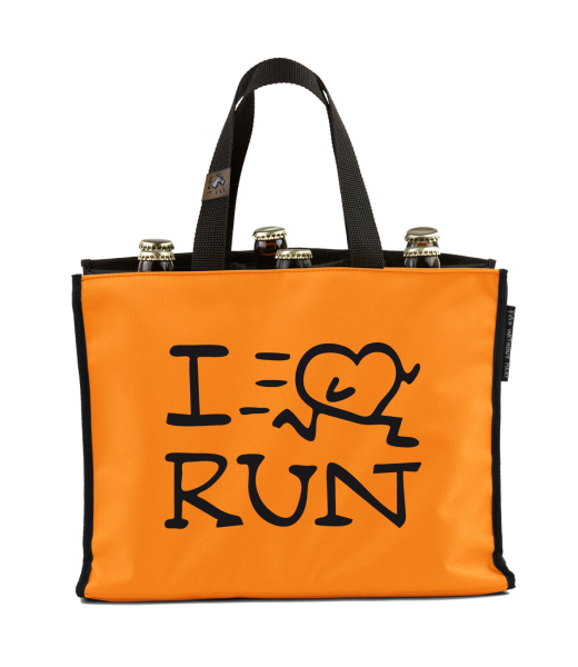 BEER CARRIER - bag for beer with design 1088 I LOVE RUN in color SIGNAL ORANGE