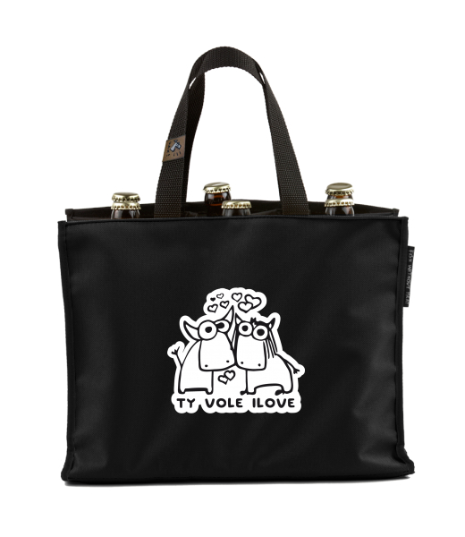 BEER CARRIER - bag for beer with design 1089 TY VOLE I LOVE in color BLACK
