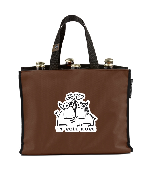 BEER CARRIER - bag for beer with design 1089 TY VOLE I LOVE in color BROWN SUGAR