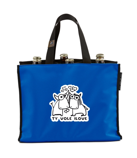 BEER CARRIER - bag for beer with design 1089 TY VOLE I LOVE in color CLASSIC BLUE