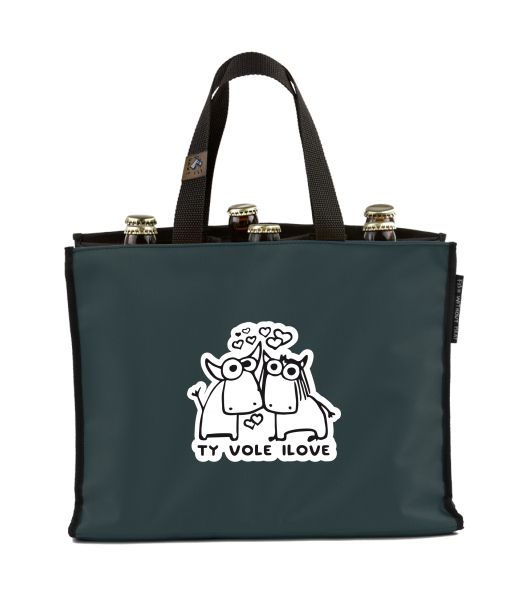 BEER CARRIER - bag for beer with design 1089 TY VOLE I LOVE in color GREY INK