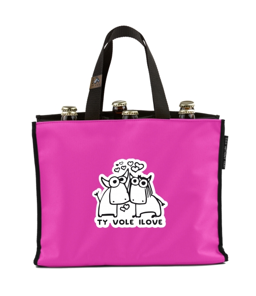 BEER CARRIER - bag for beer with design 1089 TY VOLE I LOVE in color INDIAN LILA