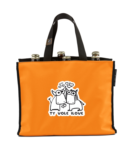 BEER CARRIER - bag for beer with design 1089 TY VOLE I LOVE in color SIGNAL ORANGE