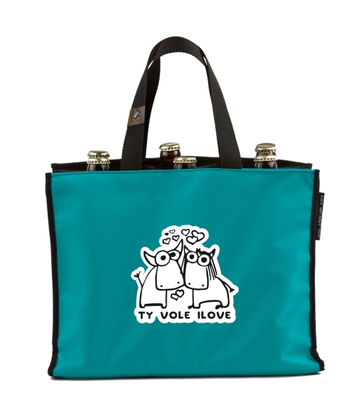 BEER CARRIER - bag for beer with design 1089 TY VOLE I LOVE in color TURQUOISE