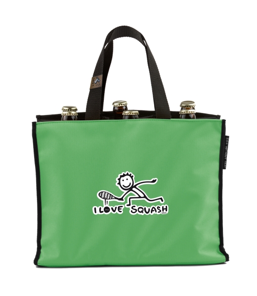 BEER CARRIER - bag for beer with design 1091 I LOVE SQUASH in color BRIGHT GREEN