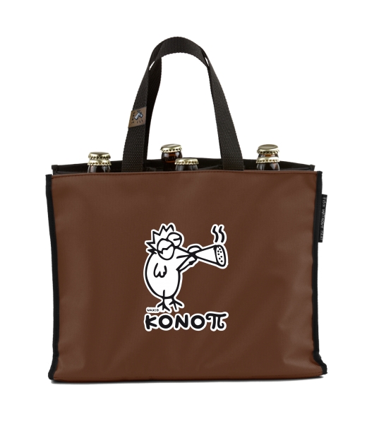 BEER CARRIER - bag for beer with design 1094 KONOPI in color BROWN SUGAR