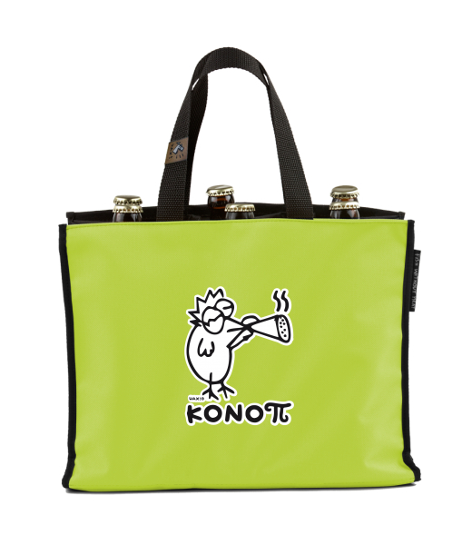 BEER CARRIER - bag for beer with design 1094 KONOPI in color GREEN LIMET