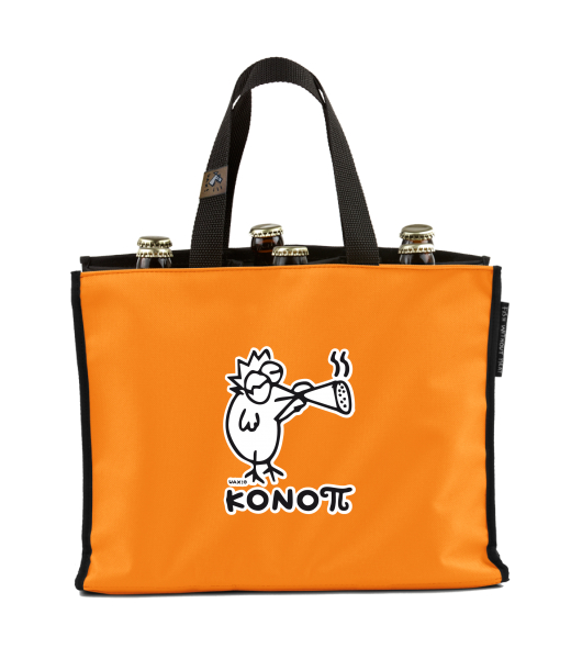 BEER CARRIER - bag for beer with design 1094 KONOPI in color SIGNAL ORANGE
