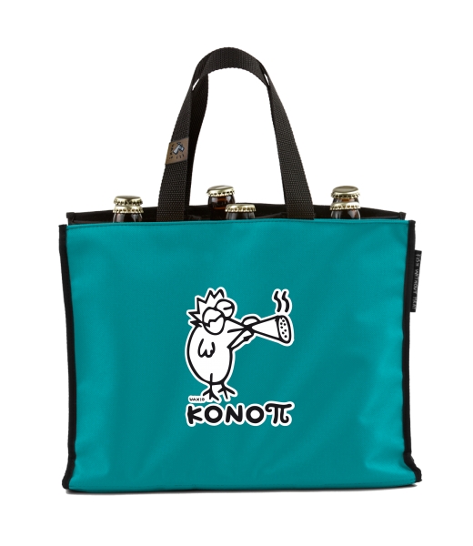 BEER CARRIER - bag for beer with design 1094 KONOPI in color TURQUOISE
