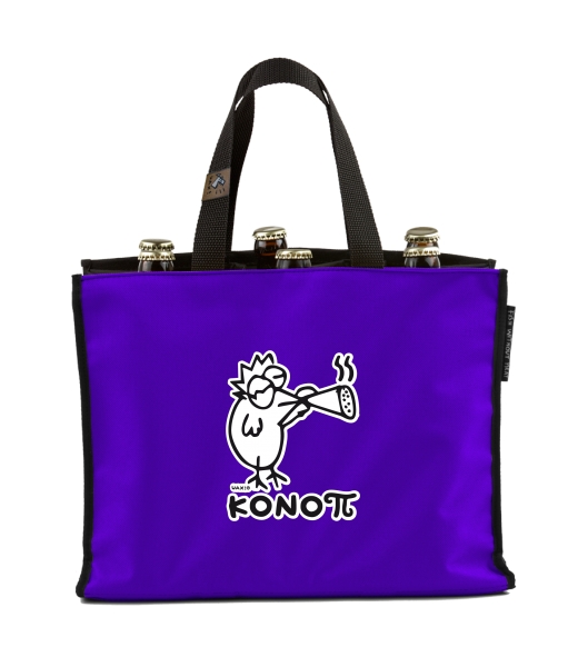 BEER CARRIER - bag for beer with design 1094 KONOPI in color VIOLET