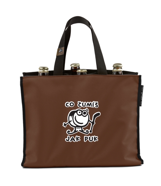 BEER CARRIER - bag for beer with design 1101 ČUMÍŠ JAK PUK in color BROWN SUGAR