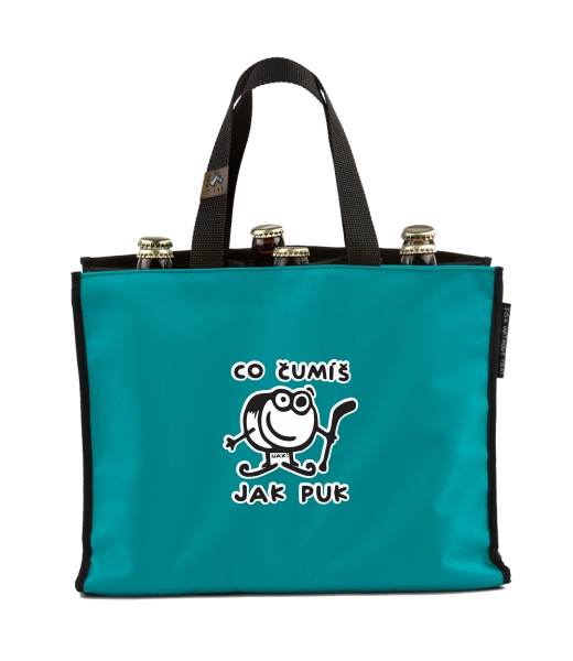 BEER CARRIER - bag for beer with design 1101 ČUMÍŠ JAK PUK in color TURQUOISE