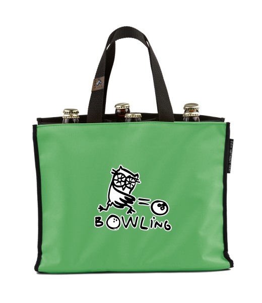 BEER CARRIER - bag for beer with design 1103 BOWLING in color BRIGHT GREEN