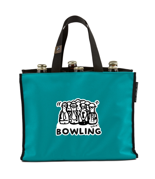 BEER CARRIER - bag for beer with design 1104 BOWLING 2 in color TURQUOISE