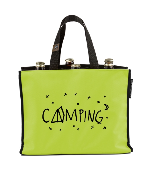 BEER CARRIER - bag for beer with design 1112 CAMPING in color GREEN LIMET