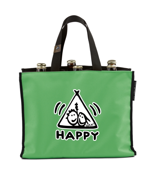 BEER CARRIER - bag for beer with design 1113 HAPPY in color BRIGHT GREEN