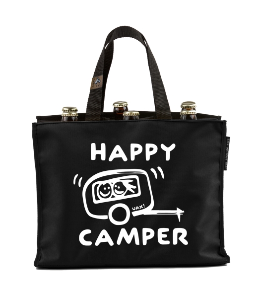 BEER CARRIER - bag for beer with design 1116 HAPPY CAMPER in color BLACK