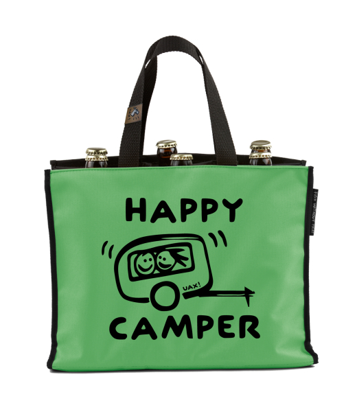 BEER CARRIER - bag for beer with design 1116 HAPPY CAMPER in color BRIGHT GREEN