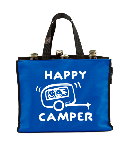 BEER CARRIER - bag for beer with design 1116 HAPPY CAMPER in color CLASSIC BLUE