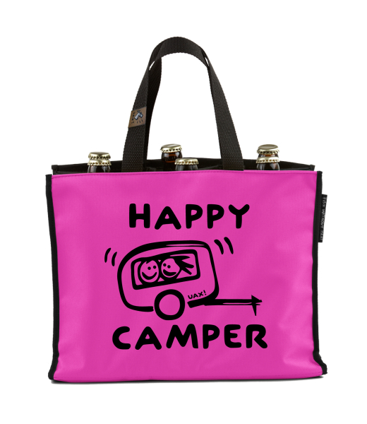 BEER CARRIER - bag for beer with design 1116 HAPPY CAMPER in color INDIAN LILA