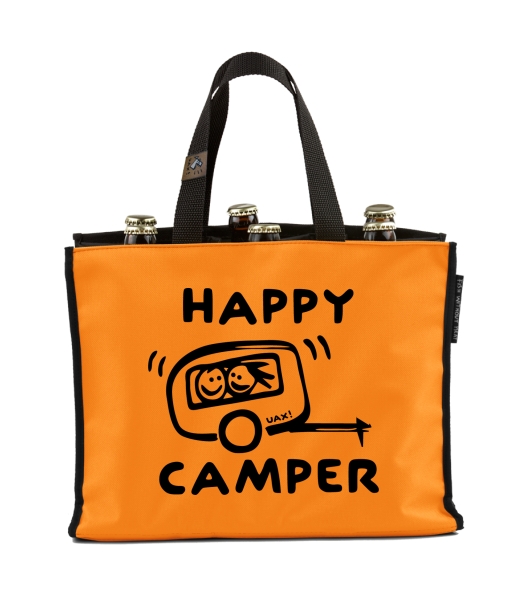BEER CARRIER - bag for beer with design 1116 HAPPY CAMPER in color SIGNAL ORANGE