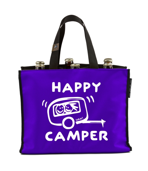 BEER CARRIER - bag for beer with design 1116 HAPPY CAMPER in color VIOLET