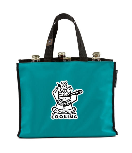 BEER CARRIER - bag for beer with design 1117 COOKING in color TURQUOISE