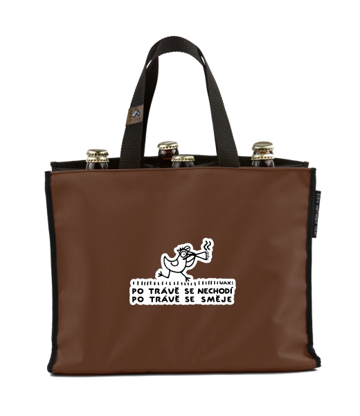 BEER CARRIER - bag for beer with design 1118 PO TRÁVĚ SE SMĚJE in color BROWN SUGAR