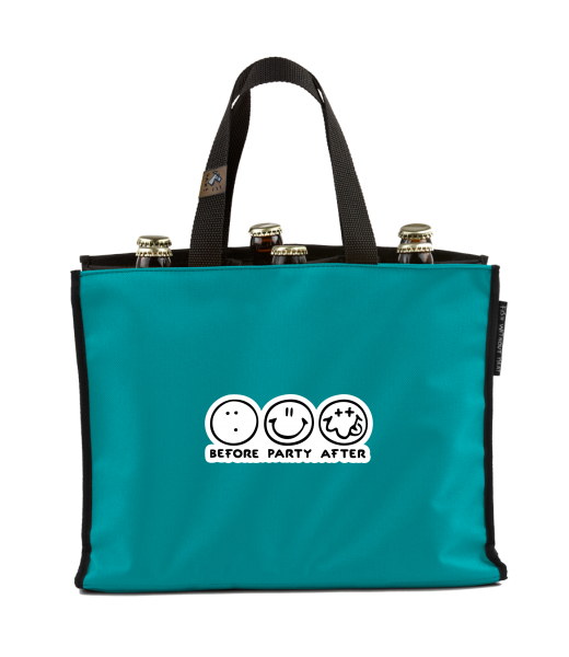 BEER CARRIER - bag for beer with design 1120 BEFORE PARTY AFTER in color TURQUOISE
