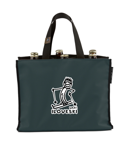 BEER CARRIER - bag for beer with design 1122 I LOVE SKI in color GREY INK