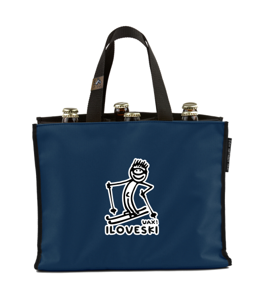 BEER CARRIER - bag for beer with design 1122 I LOVE SKI in color MIDNIGHT BLUE