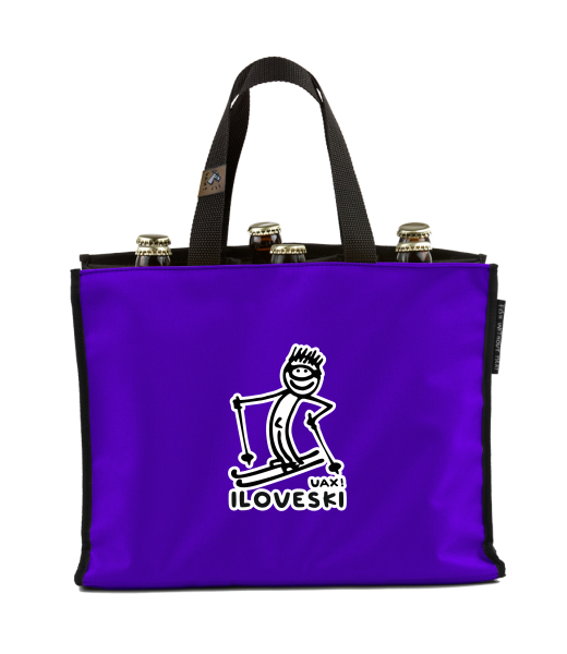 BEER CARRIER - bag for beer with design 1122 I LOVE SKI in color VIOLET