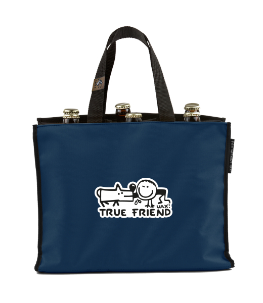 BEER CARRIER - bag for beer with design 1123 TRUE FRIEND in color MIDNIGHT BLUE