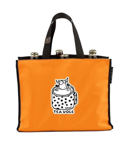 BEER CARRIER - bag for beer with design 1124 TEA VOLE in color SIGNAL ORANGE
