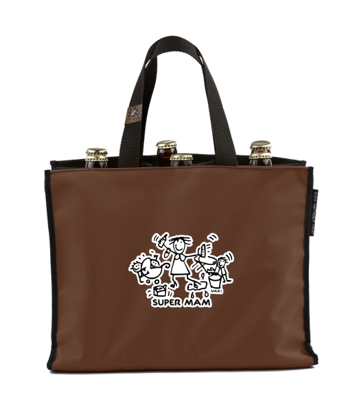 BEER CARRIER - bag for beer with design 1126 SUPER MAM in color BROWN SUGAR