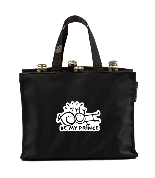 BEER CARRIER - bag for beer with design 1127 BE MY PRINCE in color BLACK
