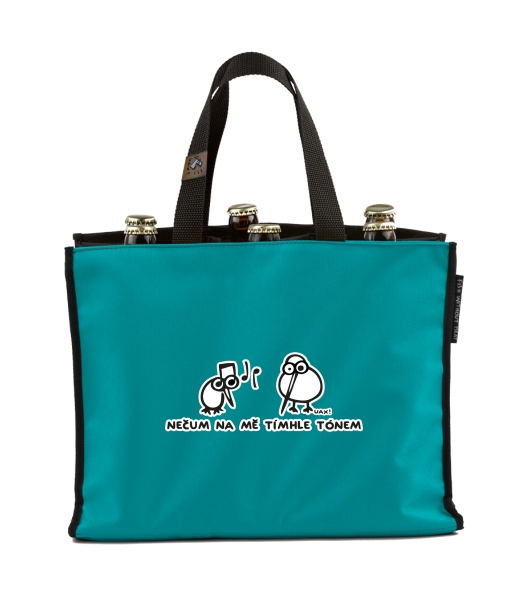 BEER CARRIER - bag for beer with design 1134 NEČUM TÍMHLE TÓNEM in color TURQUOISE