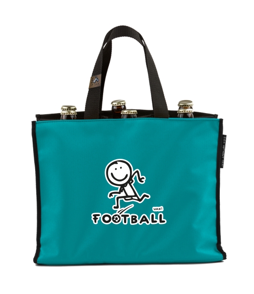 BEER CARRIER - bag for beer with design 1136 FOOTBALL in color TURQUOISE