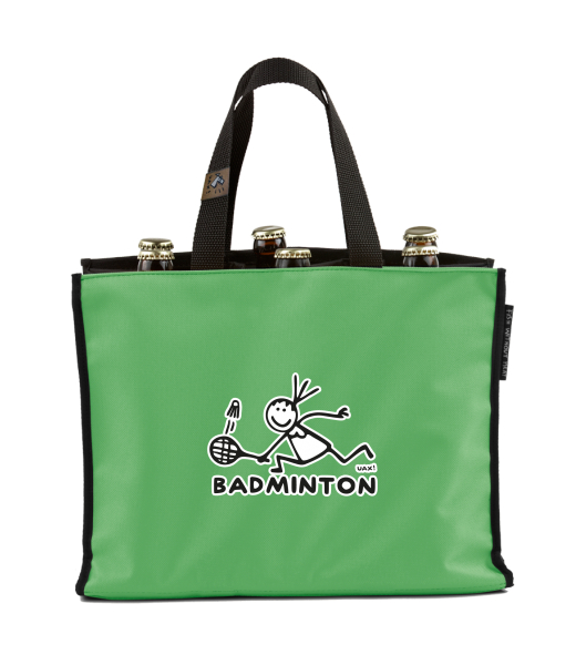 BEER CARRIER - bag for beer with design 1137 BADMINTON in color BRIGHT GREEN