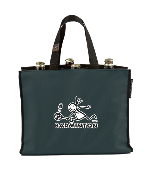 BEER CARRIER - bag for beer with design 1137 BADMINTON in color GREY INK