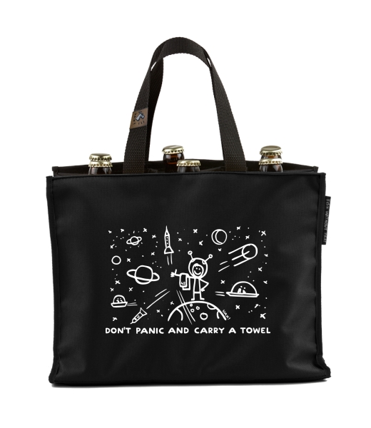 BEER CARRIER - bag for beer with design 1156 DON'T PANIC GALAXY in color BLACK