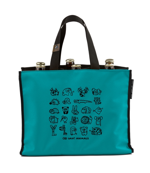 BEER CARRIER - bag for beer with design 1168 UAX! ANIMALS in color TURQUOISE
